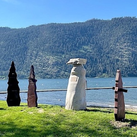 The Secwépemc Lakes Elders Advisory Committee, made up of Elders from Adams Lake Band, Neskonlith Band, Splatsín, and Little Shuswap Lake Band, guided this project. Each Landmark sculpture represents oral histories connected to each place. The Project Team would like to acknowledge the contributions and guidance of all Elders attending the Secwépemc Lakes Advisory Committee meetings.