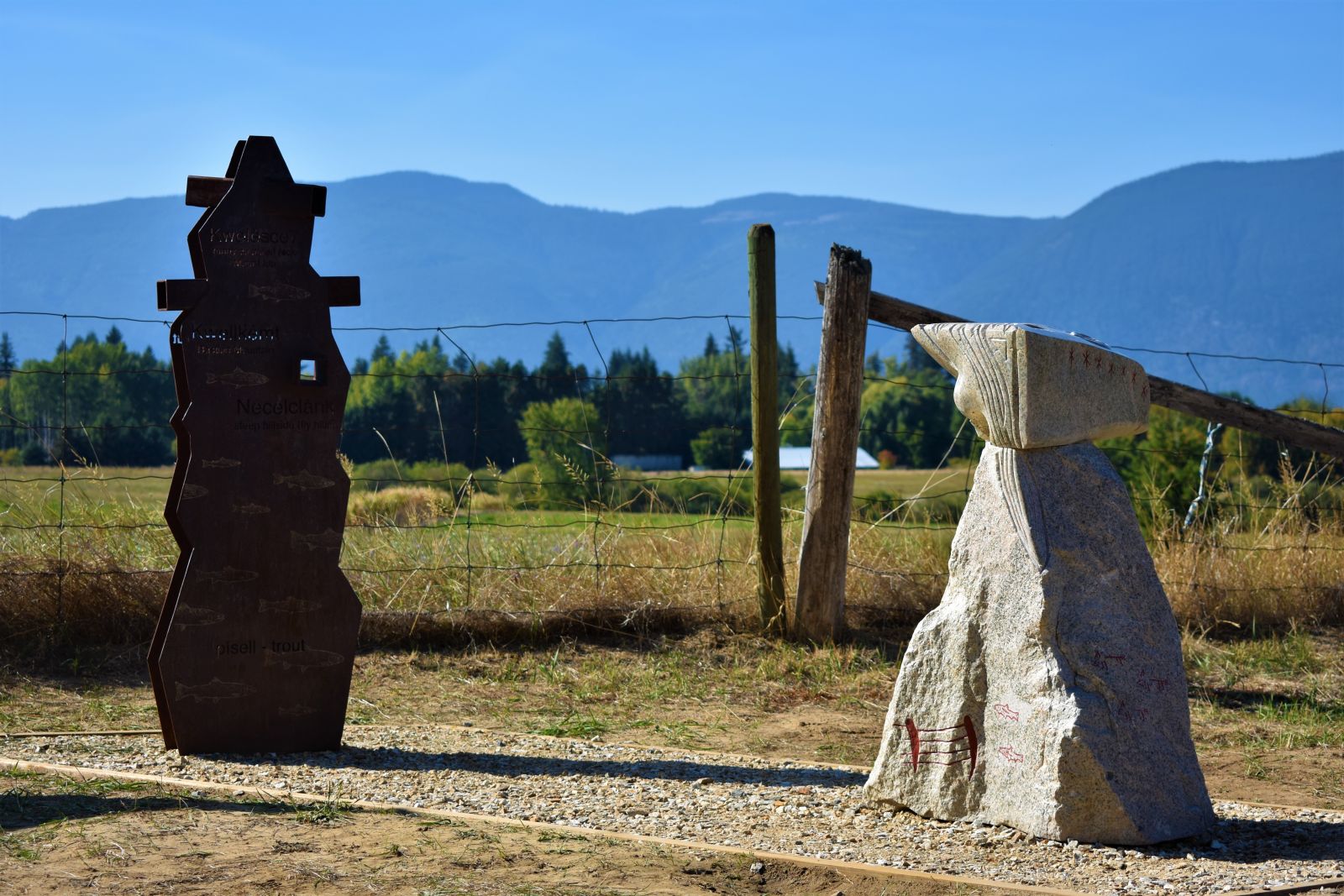 The Secwépemc Landmarks project is funded in part by Adams Lake Band, Neskonlith Band, Little Shuswap Lake Band, Splatsín, the Shuswap Trail Alliance, the Province of British Columbia, Shuswap Tourism, the City of Salmon Arm, SASCU, Hard Rock Granite, Heritage BC through the Heritage Legacy Fund, as well as through in-kind donors such as AIM Roads, the Salmon Arm Arts Centre, School District No. 83, Switzmalph Cultural Society, Len Lega, and Browne Johnson Land Surveyors. Kukstsémc also to staff and students from Shihiya, Chief Atahm, Jackson, Sullivan, SMS, and South Canoe schools for their work on the Secwépemc Landmarks trailhead posts.